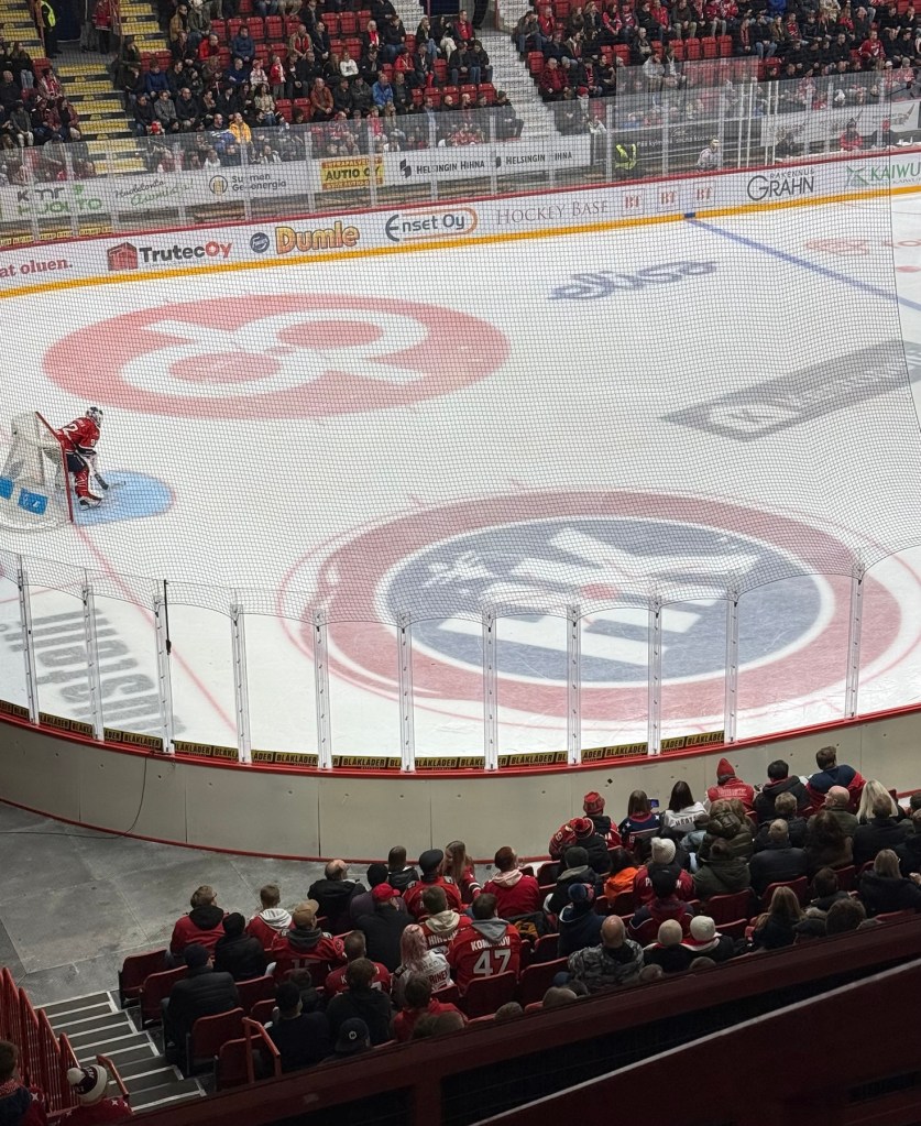Olin Nordiksella tunnustamassa punaista kiekkoväriä, jota olen tehnyt jo 1970-luvulta. En ole mikään intohimoinen kiekkofani, mutta lähden mielelläni katsomaan peliä livenä. Onhan hallissa aivan oma tunnelmansa!