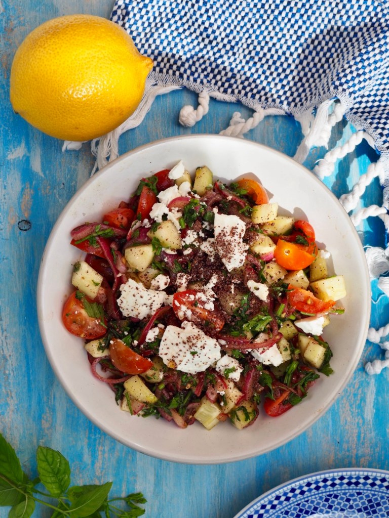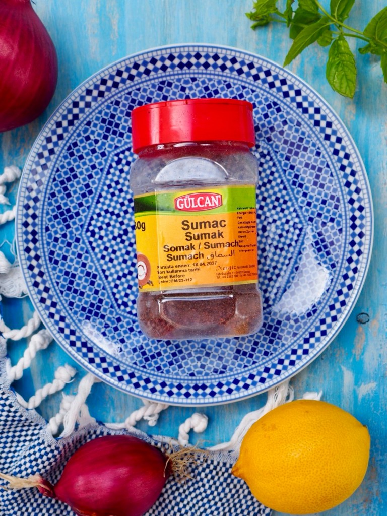 Sumakki on punainen mauste, joka on valmistettu kuivatuista marjoista. Siinä on hapan, sitruunainen maku, ja sitä käytetään antamaan potkua ruokiin, erityisesti Lähi-idän ja Välimeren keittiössä!