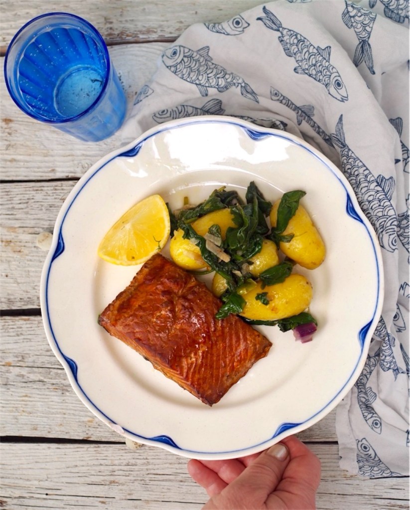 Sähkösavustettu lohifilee ja italialaiset pinaattiperunat