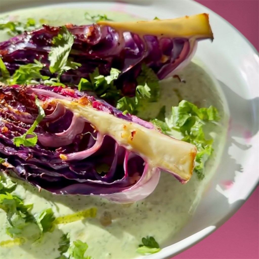 Kypsennä airfyersissa 180 astetta /22-15 minuuttia . Tai kypsennä uunin keskitasolla noin 25 minuuttia, kunnes kaali on pehmeää ja saanut kauniin värin.