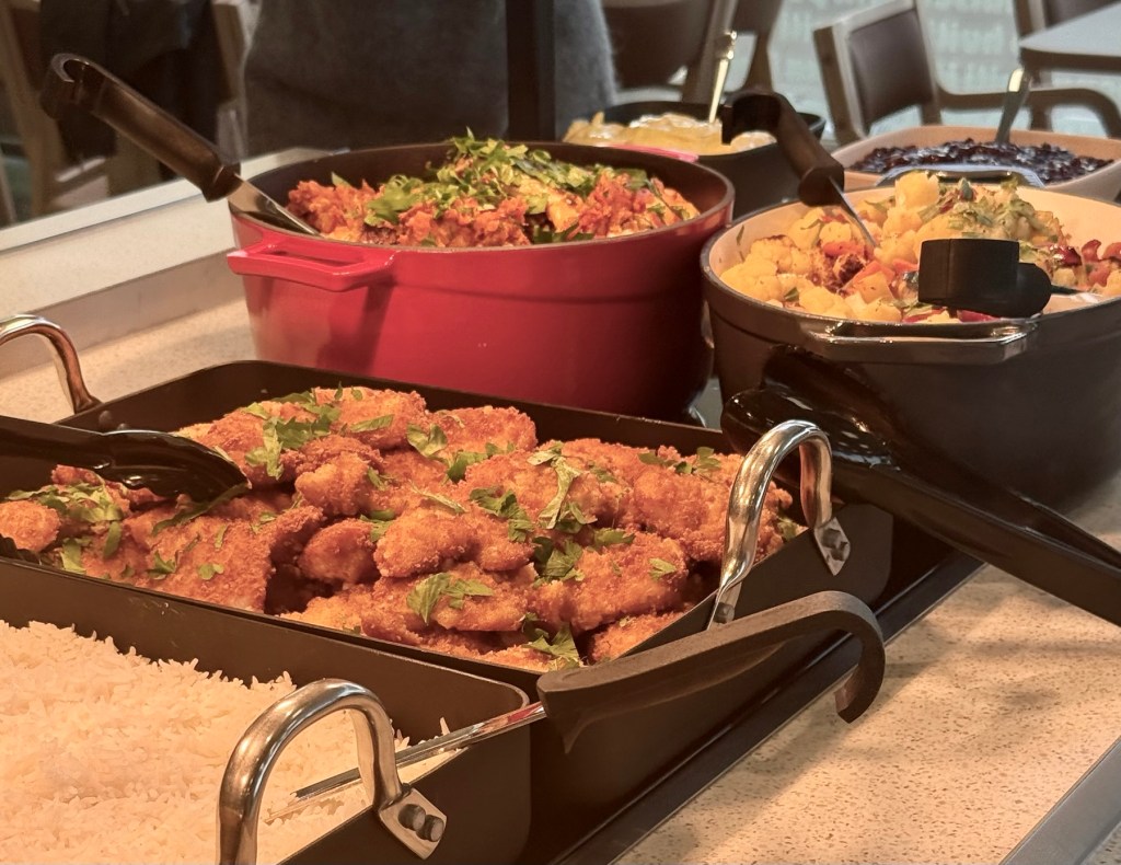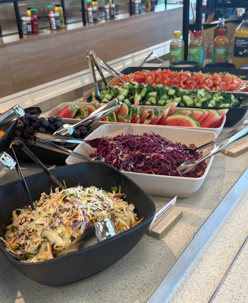 Aamuisin tarjolla on runsas buffet, jossa on tuoretta leipää, munakokkelia ja vaihtelevasti eri puuroja. Nopeita aamiaiskomboja, kuten smoothieita ja bageleita, on myös saatavilla.