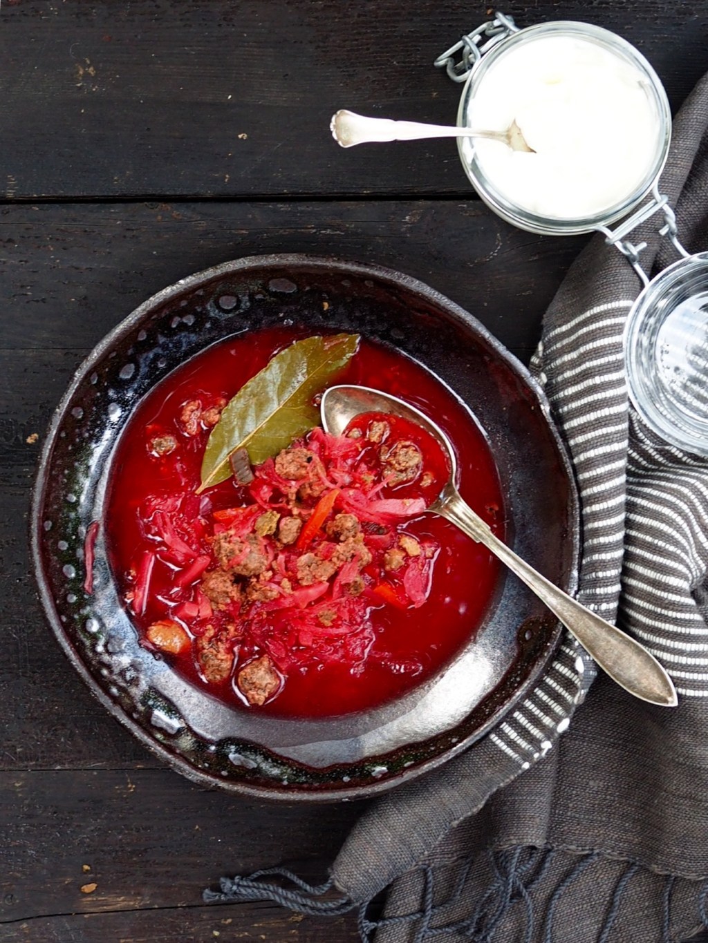 Lisää pakastekasvikset ja hapankaali. Keitä viisi minuuttia ja lisää punajuurisuikaleet. Jatka kypsentämistä viisi minuuttia. Lisää härkäpapuvalmiste kypsään keittoon tai lisää se keiton joukkoon vasta lautasella.