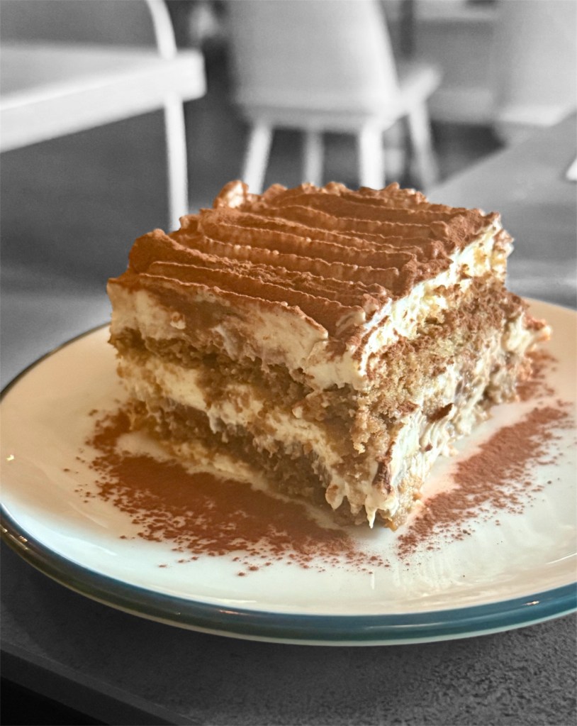 Kahvilla maustettu jälkiruoka savoiardikakulla, mascarponella ja nutellalla.