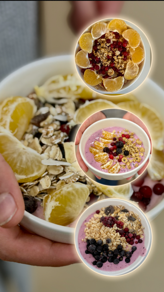 Teoriassa eli oppilaiden nauttiessa valmistamiaan smoothiekulhoja palautettiin mieleen jo seiskalla käsitelty ateriarytmin merkitys energiatasolle sekä aamu- ja välipalojen tärkeys.