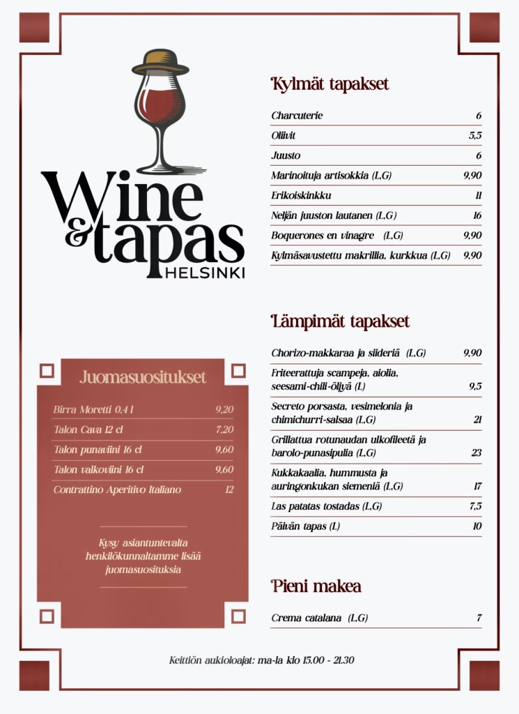 ”Wine & Tapas Helsingin konsepti on selkeä: rentoa, helppoa ja laadukasta. Ruokalista on lyhyt ja yksinkertainen, sisältäen annoksia, jotka on suunniteltu jaettaviksi. Panostamme tunnelmaan ja palveluun, jotka ovat tärkeitä asiakaspalautteen kannalta”, kertoo ravintolayhtiö Arden Restaurantsin ravintolajohtaja Ryszard Janik.
