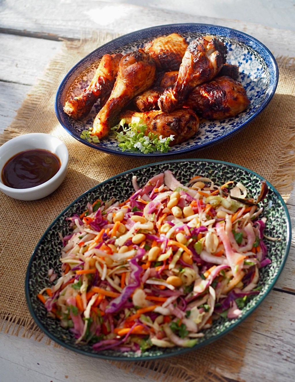 Perjantaina kaupasta tarttui mukaani maustamattomia broilerin koipia 30% alennuksella. Viimeinen käyttöpäivä on tänään. Pistin koivet illalla Peking Duck -kastikemarinadiin. Oli aika käyttää kesägrillauksen avatut maustekastikkeet loppuun jääkaapista pyörimästä.