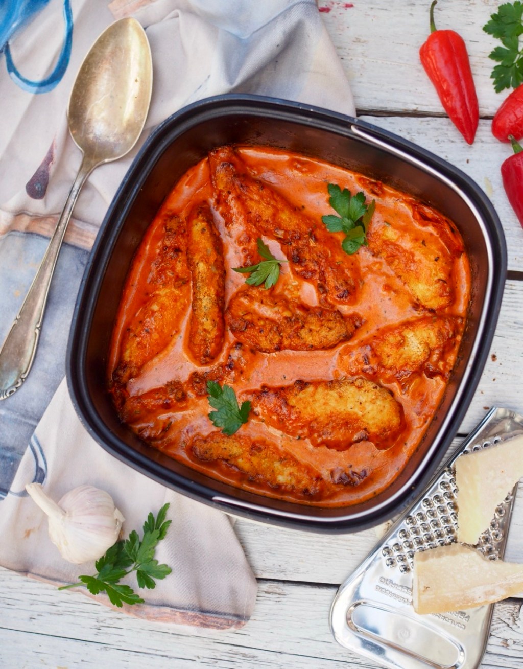 on täydellinen vaihtoehto arkiseen gourmet-illalliseen. Se on helppo ja nopea: valmistelut vievät vain viisi minuuttia, ja ruoan kypsennysaika on 200 asteisessa airfryerissa noin vartti.