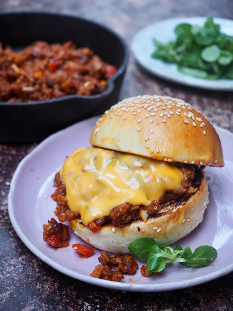 Kun googlailin Sloppy Joen historiaa, törmäsin Sloppy Janeen, Sloppy Joen terveellisempään siskoon. Siinä jauhelihan joukossa on myös kasviksia