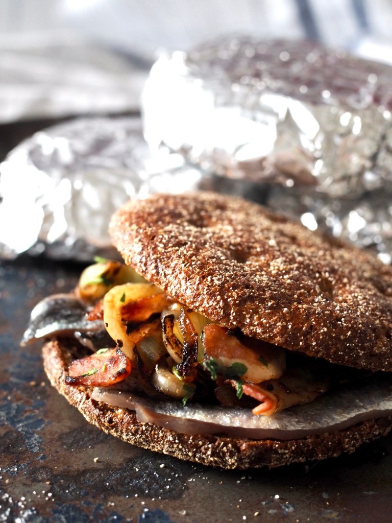 Jokaiselle viipaleelle pannaan ensin paksu viipale makkaraa ja päällimmäiseksi juustoviipale.
