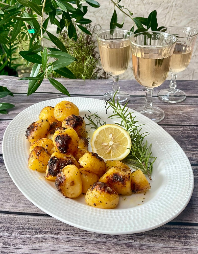 Airfryerissa paahdetut viinirypäleet ja burrata