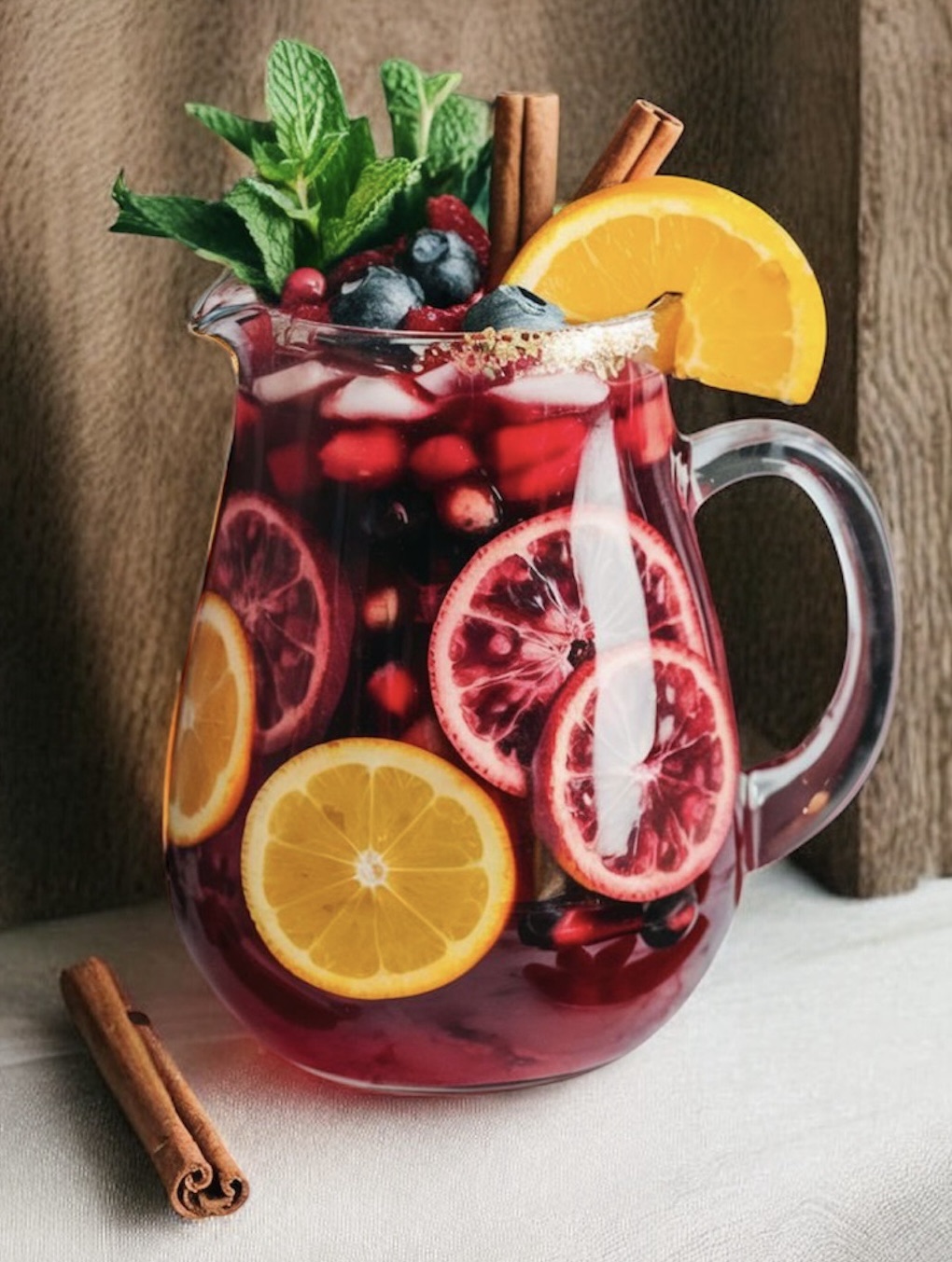 Alkoholiton, joulumausteinen sangria sopii niin pienille kuin isoille jouluihmisille. Sitä voi huoletta tarjota myös autoilevalle joulupukille!