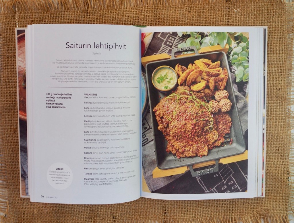 Tiina vinkkaa kirjassaan, että samalla tavalla lehtipihvit voi valmistaa myös kananjauhelihasta, riistasta tai kalamassasta.