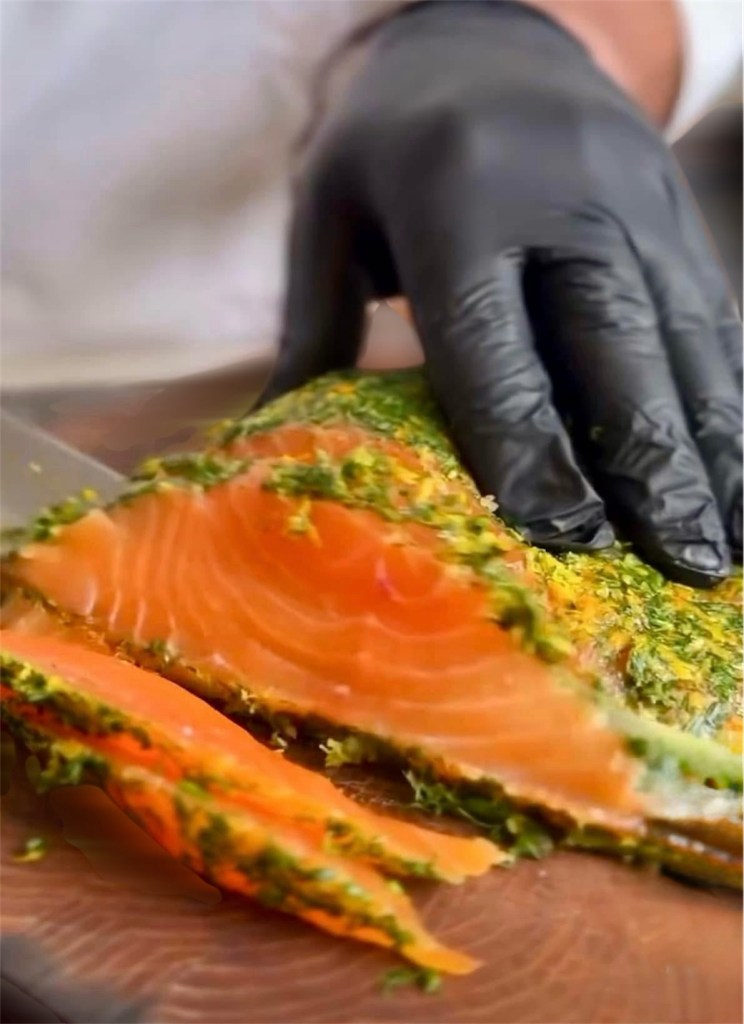 Leikkaa lohi ohuiksi viipaleiksi ja nauti sellaisenaan tai käytä sitä voileipiin. Tai tarjoa uusien perunoiden kanssa.