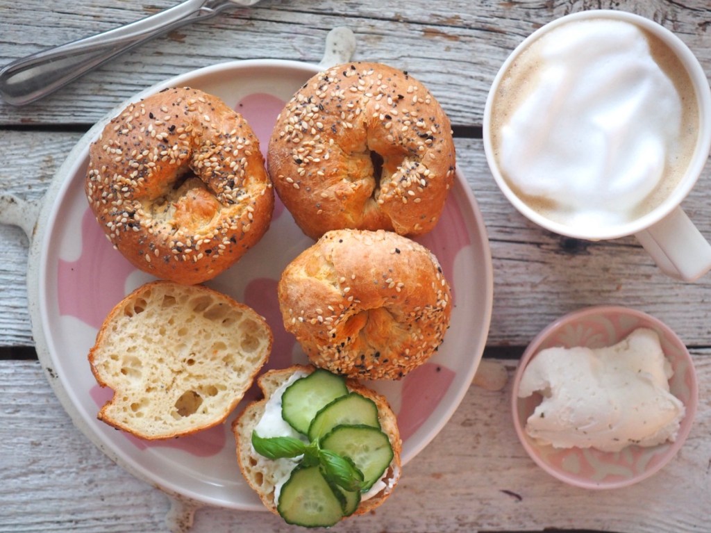 VINKKI! Voit kypsentää bagelit myös 200-asteisessa uunissa noin 15 minuuttia.