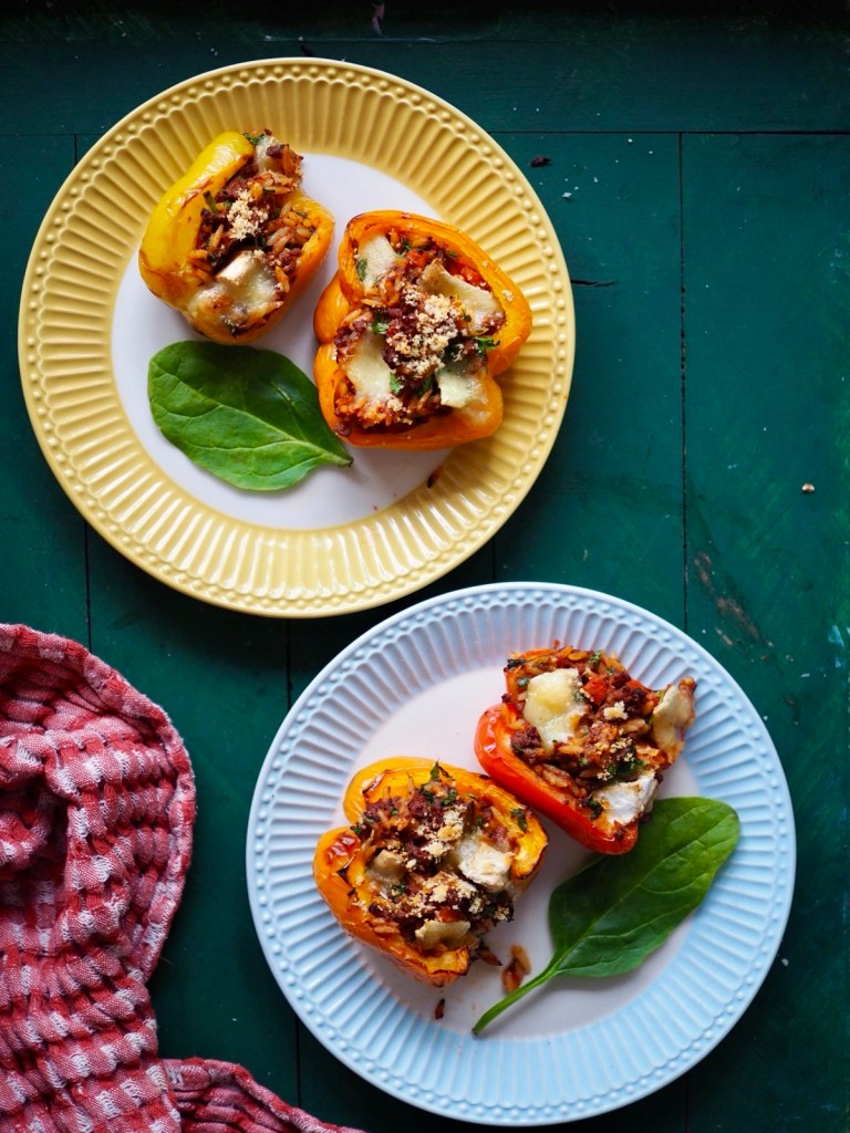 Kun paprika on esikypsennetty, anna sen jäähtyä hetki ja täytä sitten jauhelihaseoksella.