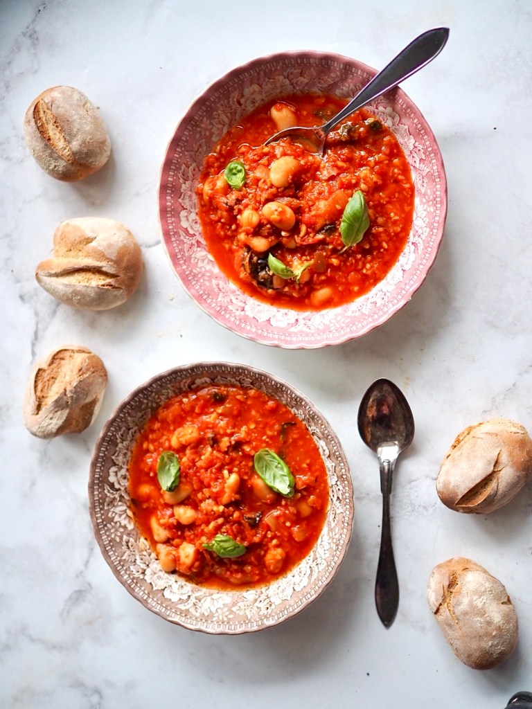 Hiihtolomalla maistuu lämmittävä ka täyttävä keitto. Tomaattinen papukeitto ja lämpimät piimäsämpylät olivat mitä mainioin vegelounas, kun ystäväni tuli tervehtimään leikkauspotilasta. Ensimmäinen kotiruokani sairaalajakson ja valmisruoka-annosten jälkeen. Kylläpä maistui.
