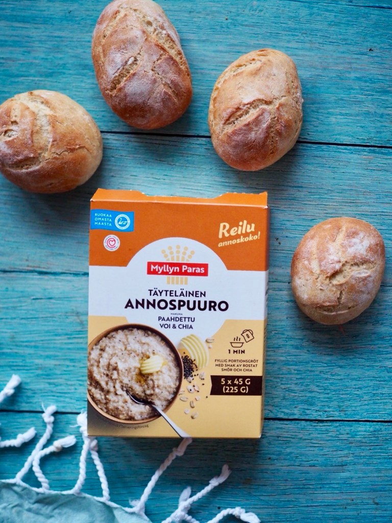Ystäväni kävi kylässä ja toi tuliaisiksi Myllyn Parhaan täyteläisiä annospuuroja. Kolmesta uudesta mausta tutustuin ensimmäiseksi paahdetulla voilla ja chiansiemenillä mastettuihin puuroaineksiin. Söin sitä niin aamupuurona, kuin käytin tuotetta leivonnassa. Sama ystävä opetti yökyläilijälle, miten hyvää ruskistettu voi on aamupuuron kanssa. Siihen jää koukkuun.