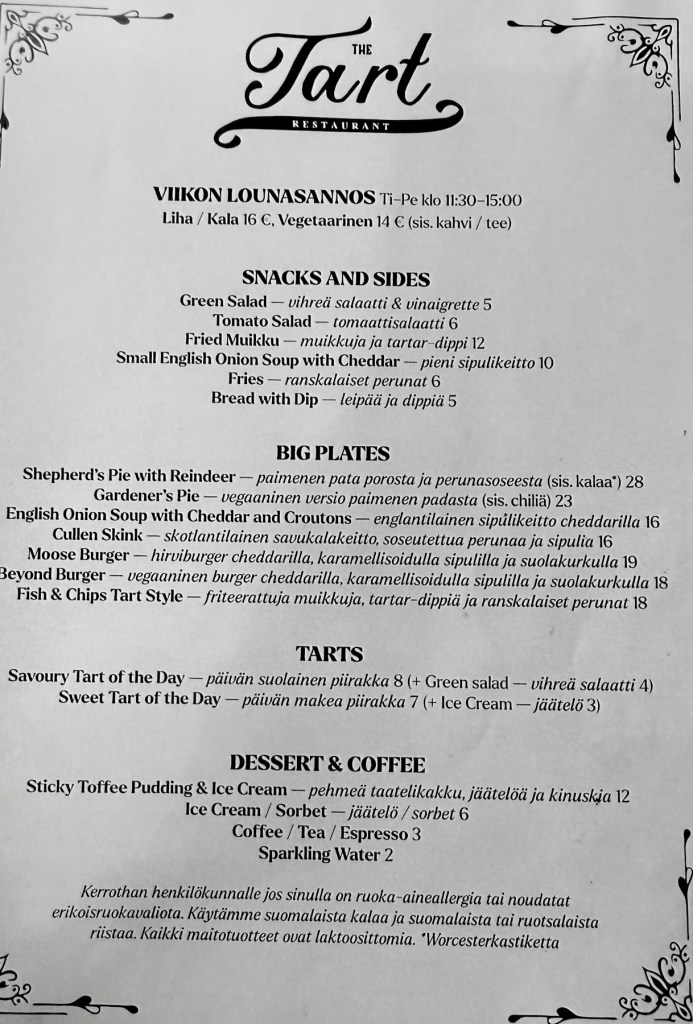 The Tart on brittiläinen ruokaravintola Helsingin Yrjönkadulla. Se tarjoaa brittiklassikoita ja brittiläisen kansainyhteisön antimia. Kävin The Tartissa ystävättäreni kanssa myöhäisellä lounaalla, pöytävarauksemme oli vasta 14.30.