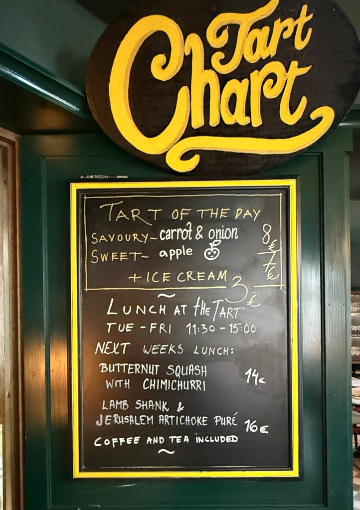 The Tart on auki lounaalla, illallisella ja sunnuntaisin. Viikonloppuisin keittiö on auki 22:30 asti. Viikonloppuiltoina The Tart muuttuu bilepaikaksi iltakymmenen aikoihin, kun DJ soittaa levyjä. Sunnuntaisin on Sunday Roast (38 euroa), joka kannattaa varata etukäteen. Paisti on poroa.