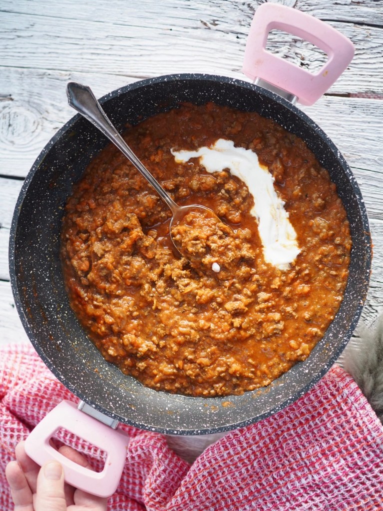 Ghejme badenjam – nopea iranilainen jauheliha-munakoisopata