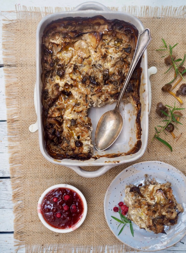 Suppilovahvero-kaalilaatikko (vegenä ja lihalla)