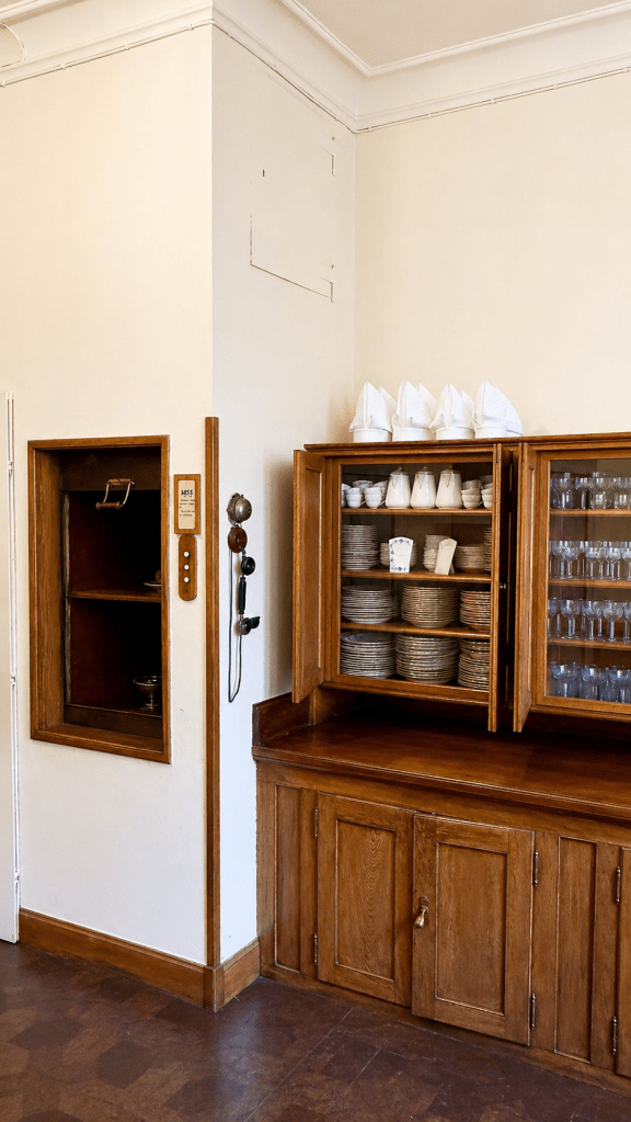Ruokasali kertoi paljon myös emännästään. Hopeaesineet, posliinit, tarjoiluastiat ja pöydän koreografia muistuttavat ajasta, jolloin ruokakulttuuri oli myös vallan ja sivistyksen näyttämö.