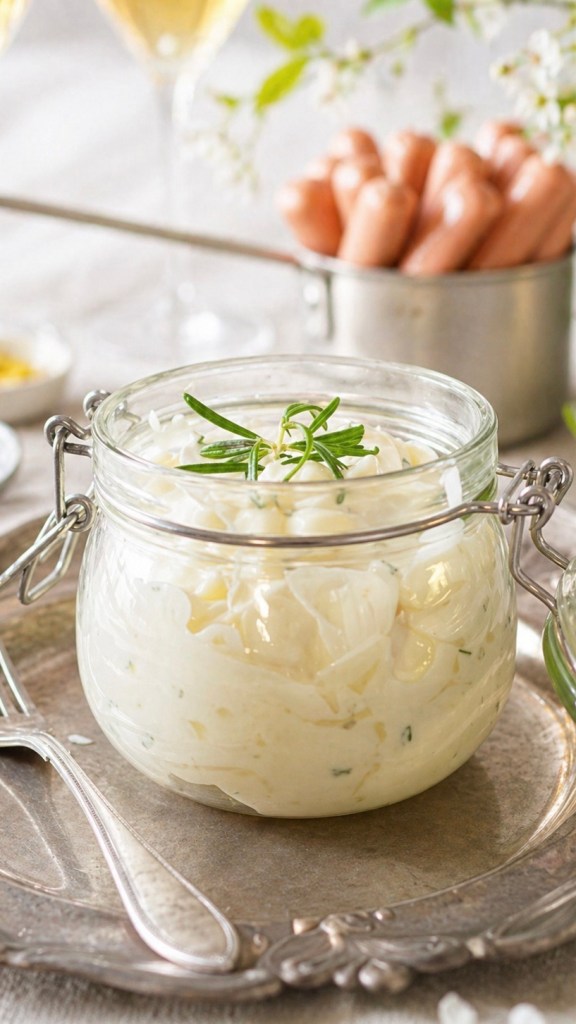 Bratwurst tai nakit, lämmin perunasalaatti, lyttyperunat